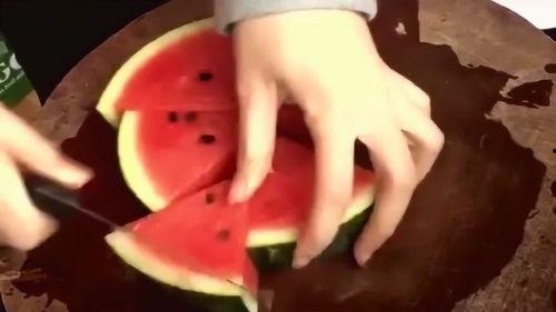 选好西瓜后,接下来就是切割了。这里有个小窍门:用刀在西瓜底部划一个圈,然后沿着圈切到底部,西瓜就会自动裂开。这样不仅方便,还能保证西瓜的形状完整,拍照时更美观。